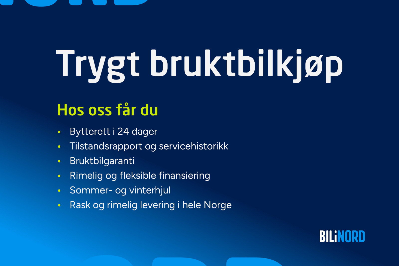 Det faktum at ingen leverer bedre garantier på brukte biler enn Bil i Nord gjør, tror vi er noe av suksessfaktoren vår.