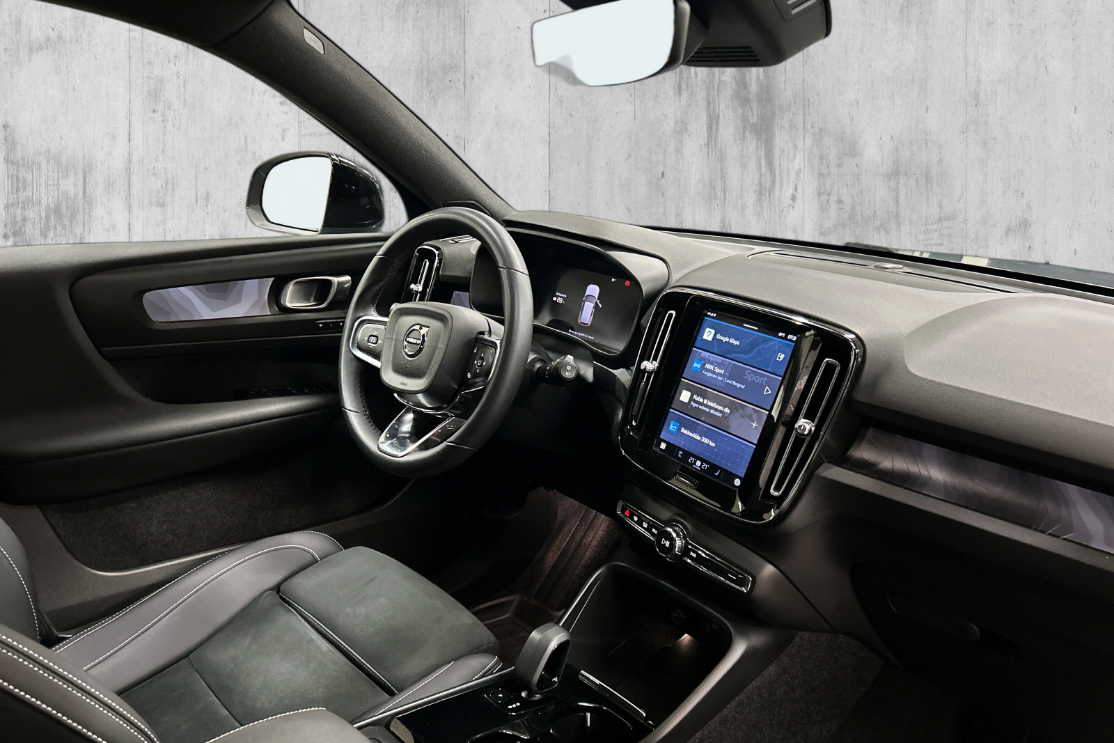 Interiøret byr på høy komfort med stilfulle detaljer, digitale skjermer og intuitivt oppsett her får du en bil som er like fin på bytur som langtur. Den elektriske drivlinjen gir deg stille, komfortabel kjøring uten utslipp, samtidig som bilen bevarer Volvo-kvalitet, sikkerhet og fleksibilitet.
